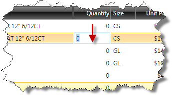 In the image StateA, the cursor is in the first row of the Quantity column and the cell is in edit mode. The column is defined in XAML like this: