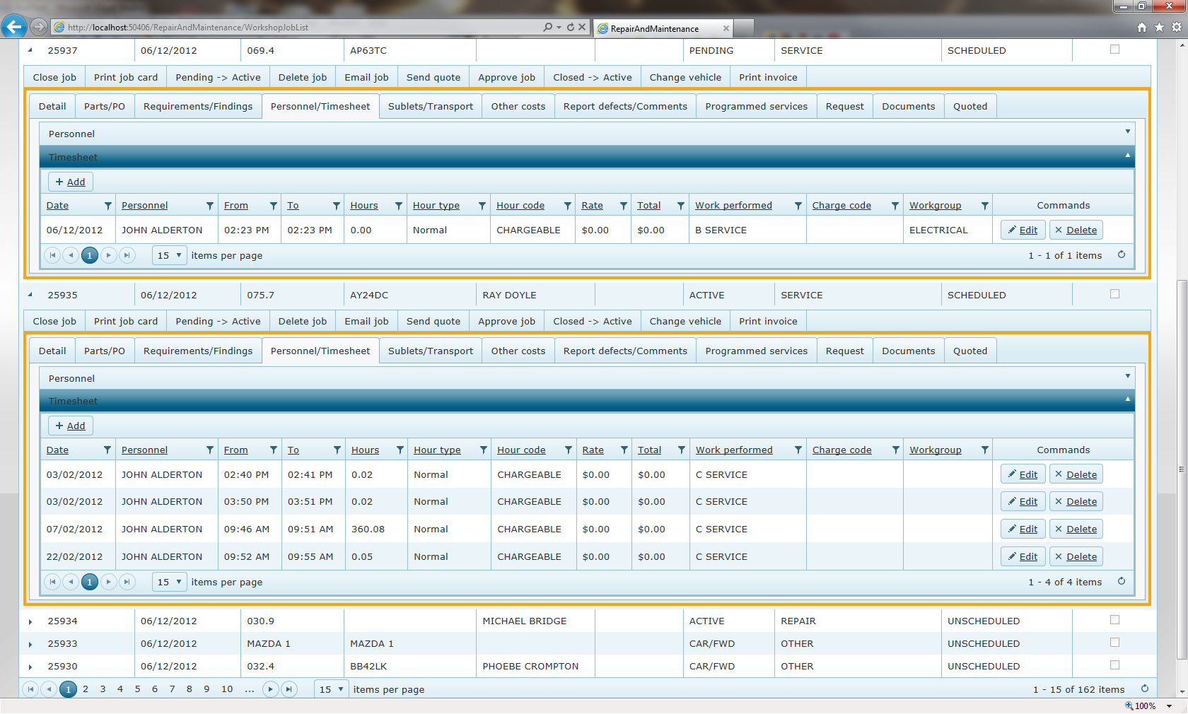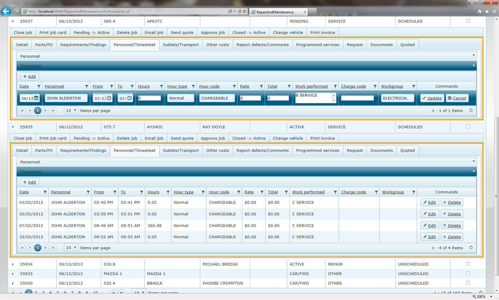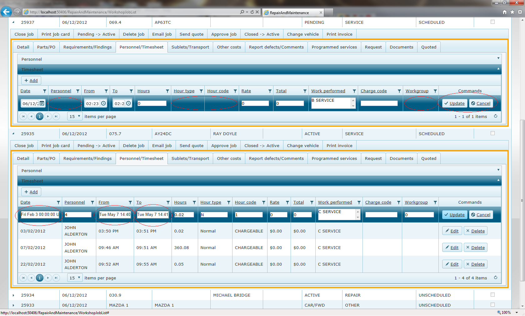 I've got a parent grid and in the detail view I've got another grid which is inside a panel. The problem here is, if I open the detail view of two records and click on edit of the first detail view grid and then click on edit of the second detail view grid, the edit mode goes haywire. I'm attaching the pictures of the scenario. Please have a look at the pictures, it didn't happen in Telerik MVC controls. May be I'm doing something wrong. Please let me know.