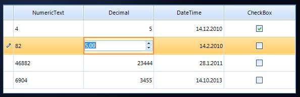 I'm not sure if I underatand your issue. A RadGridView with a GridViewDecimalColumn will have a spin editor as its editor. Please could you explain in more detail and if possible include any supporting screenshots.