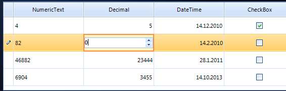 private void radGridView1_KeyPress(object sender, KeyPressEventArgs e){ GridSpinEditor spinEditor = this.radGridView1.ActiveEditor as GridSpinEditor; if (spinEditor == null) { return; } GridSpinEditorElement editorElement = (GridSpinEditorElement)spinEditor.EditorElement; editorElement.TextBoxItem.SelectionStart = 1; editorElement.TextBoxItem.SelectionLength = 0;}I hope this helps.