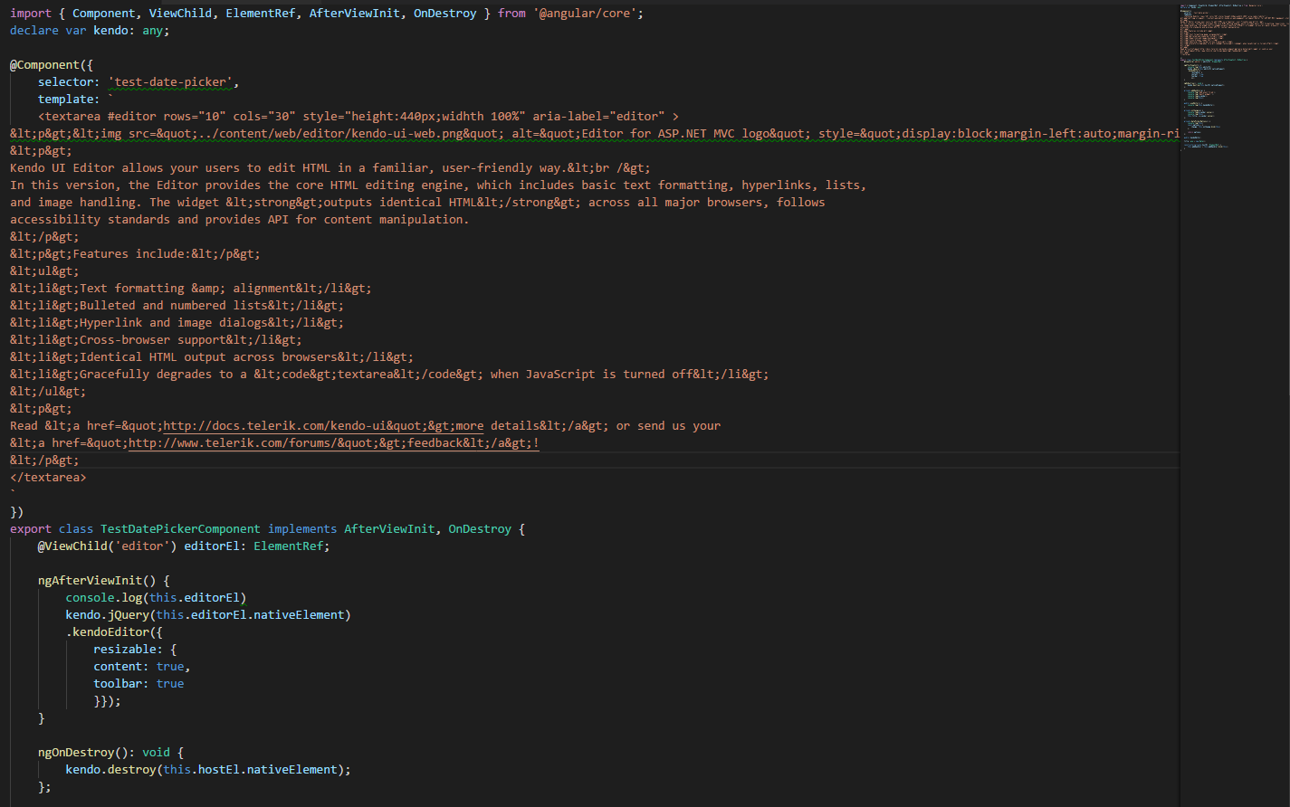 Hi i am using kendo jquery editor in my angular 4 application, but output is not as expected. following is my code and output file screenshot is attached below