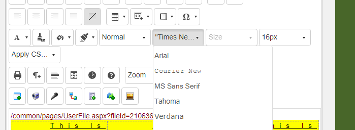 We try to customize editor font names. We added 5 font names which not include "Times New Roman" but when refresh the page, we still see the default one is "Times New Roman" ( see attachment ). Can we change the default value as the first one in the dropdownlist?