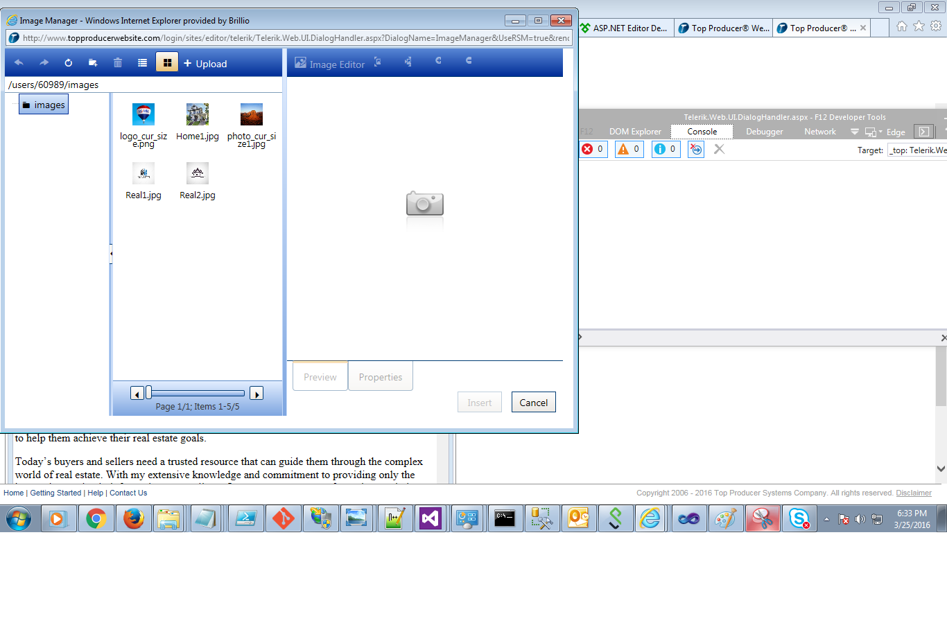Editor Dialogues(Image uploader, link manager, document manager) does not close in all IE versions onclick of Cancel and insert button. whereas this works fine in other browsers.
