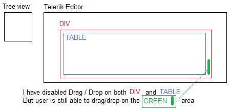 The user is still able to drag/drop beside table inside Div. (See attached explainaton Explain1.jpg)
