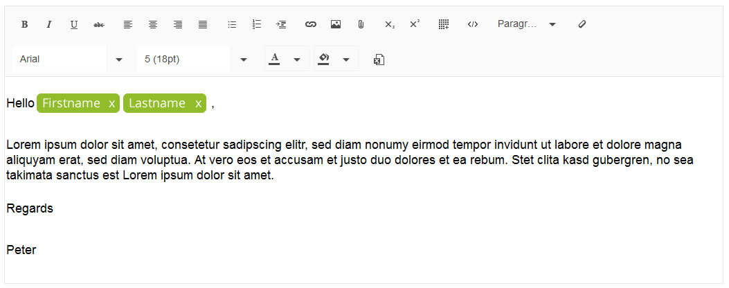 we try to develope a Documentservice for one of our projects. In this we need a editor, to create and modify the documents. Our idea: the user is able to set fields in the text. The field could be a tag like this for example: