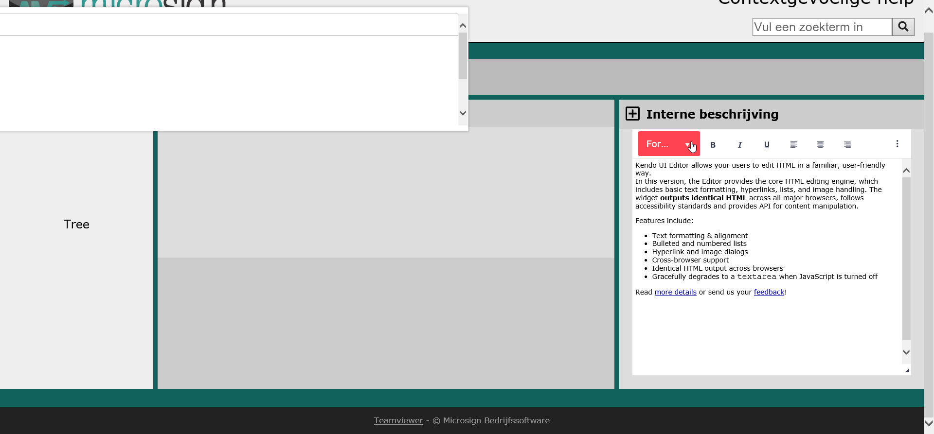 In the application I'm building I am trying to implement the Telerik UI Editor. While the size and position of the editor itself is completely fine, I seem to get some problems when trying to open some of it's tools which are connected to dropdown sections. These happen when using the tools 'formatting' and also when accesing the three-dotted "more tools" button.