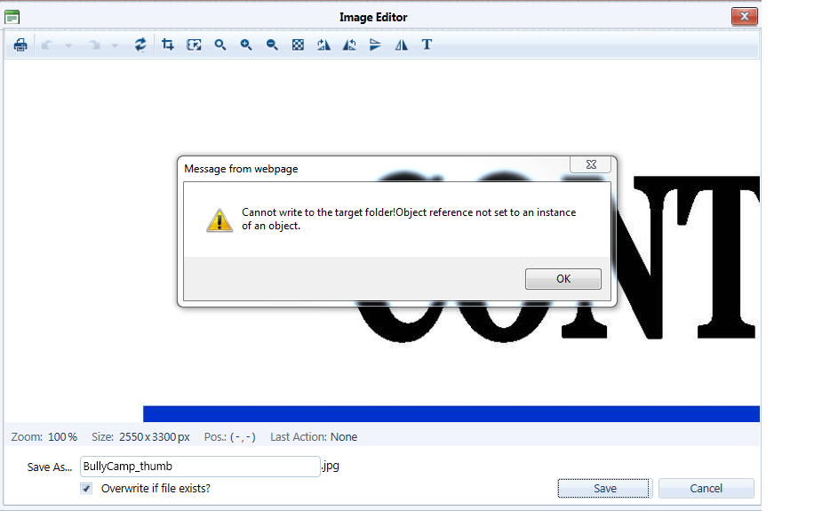 We have an issue with image manager in the editor. When we refresh page or save image, it throws error message.