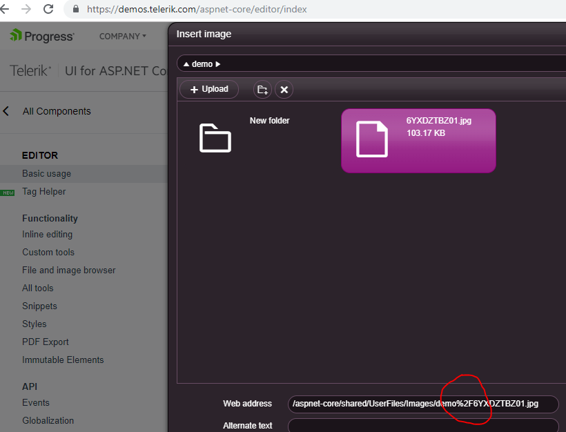 As for the reply I got from ASPNet Core Team, why the imagebrowser is using some this kind of path where it should not anymore.