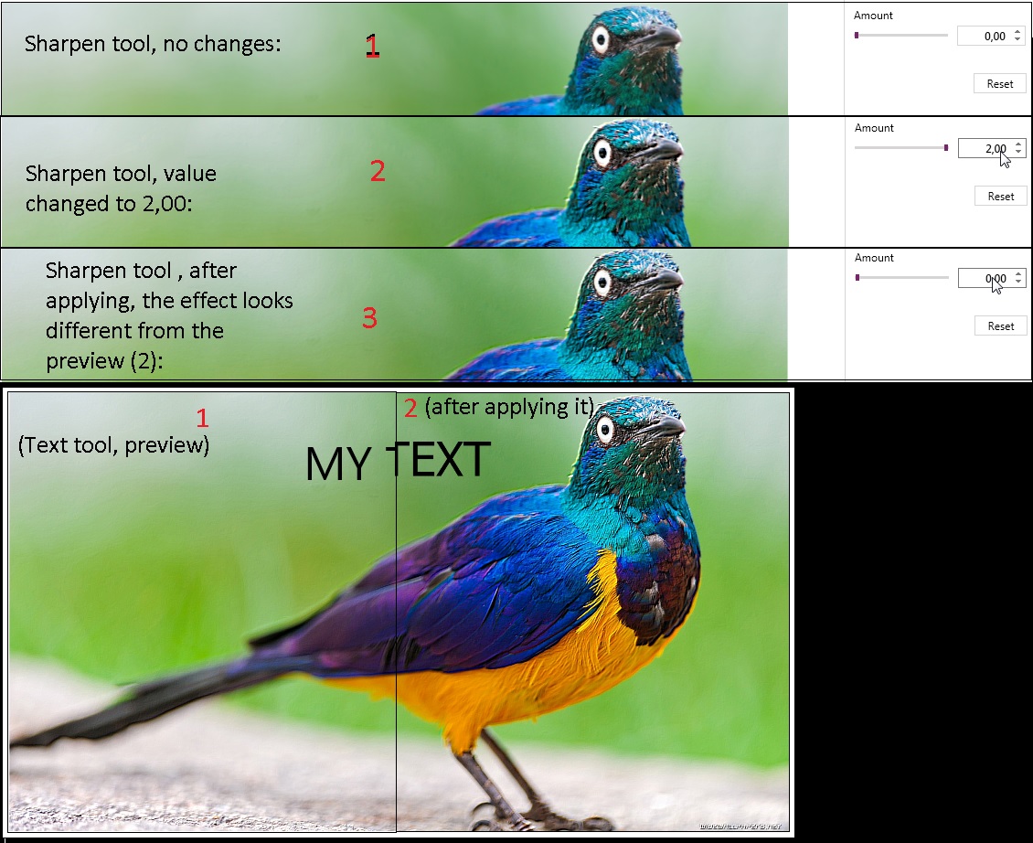 After I apply any of the tools, the image doesn't look like the preview.