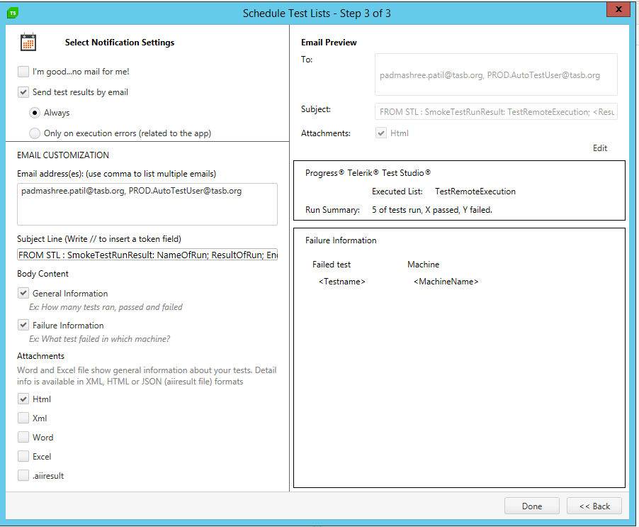 I have setup smtp email configuration on schedule server and selected option to send email while scheduling test execution.