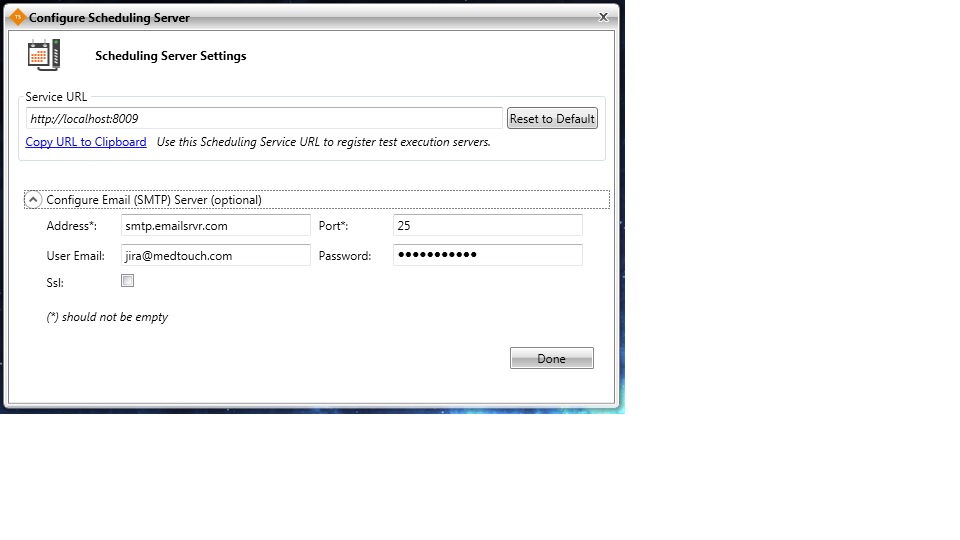 [09/04 15:56:35,Telerik.TestStudio.ExecutionManagerService.exe(10252:11),Execution] PostListExecutionEmailer.OnAfterTestListCompleted() : Attempting to send email for job 434b1023-5c2b-424f-8d53-b12632a09b3a[09/04 15:56:36,Telerik.TestStudio.ExecutionManagerService.exe(10252:19),Execution] ResultMailSender.client_SendCompleted() : Smtp sending email failed: The SMTP server requires a secure connection or the client was not authenticated. The server response was: 5.5.1 Authentication Required. Learn more atYou can use this little utility to test what settings are needed to connect to your SMTP server and send an email. I can't really help you with your SMTP configuration. Only the person that setup that server can help you.