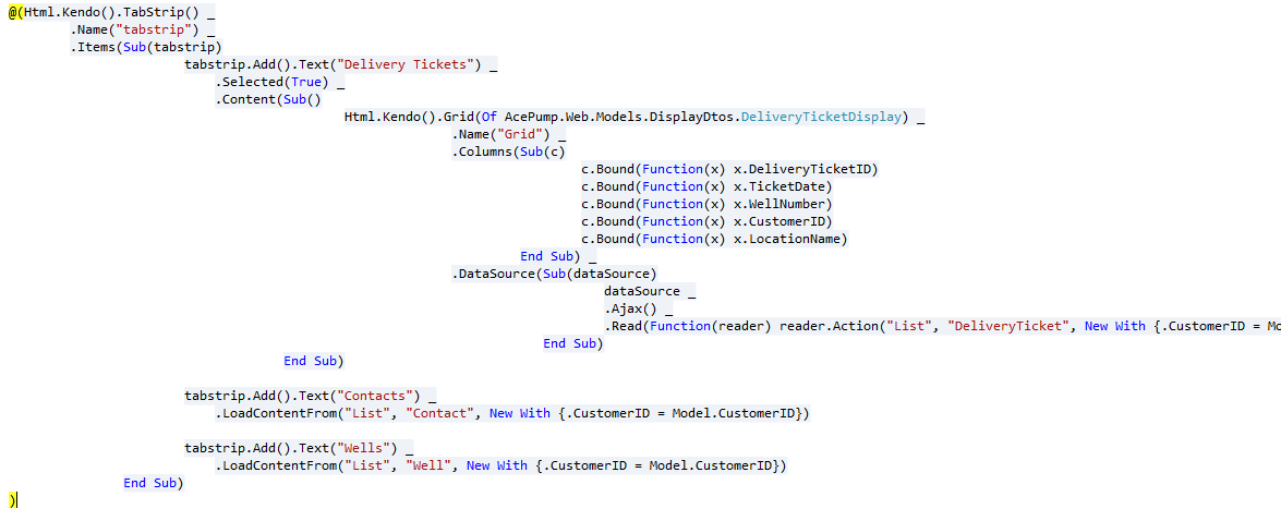I think this should be simple, I just can't quite seem to get it. I have a TabStrip which I want to embed a grid into one of the tabs. The grid should load dynamically from AJAX. I have both working independently, but when I try to put the Grid into the TabStrip, I get no content. I can see in firebug there is never a request being made for the content.
