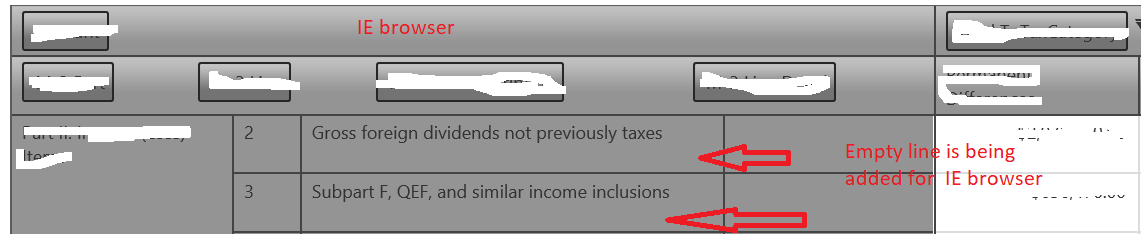 but the issue is, when I open pivot in IE browser in that case empty line is being added whereas this issue does not occur in case of Chrome browser. Kindly refer screenshot attached.