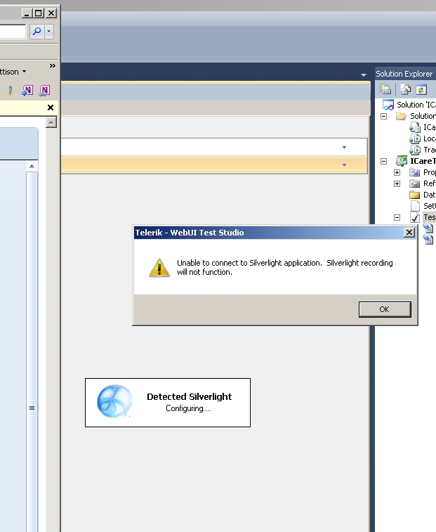 I use "Telerik WebUI Test Studio Developer Edition" and I try to record a sample click event on a Silverlight page but I receive this message :