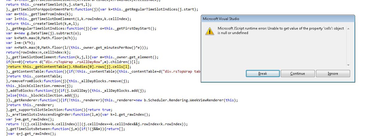 I have bind radscheduler using web service and i had set Weekview- EnableExactTimeRendering is true and scheduler is in Weekview. When i click on Show 24 Hours link its shows error like below