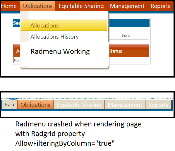I have a Radmenu with EnableEmbeddedSkins="false" in my master page. Everything works fine until that menu is used with a Radgrid that utilizes column filtering via AllowFilteringByColumn="True". The Radgrid uses the embedded skin (i.e. not using EnableEmbeddedSkins="false"). It seems that the grid makes the Radmenu on the Masterpage ignore the modified skin that I've created and must be using the internal Grid skin.