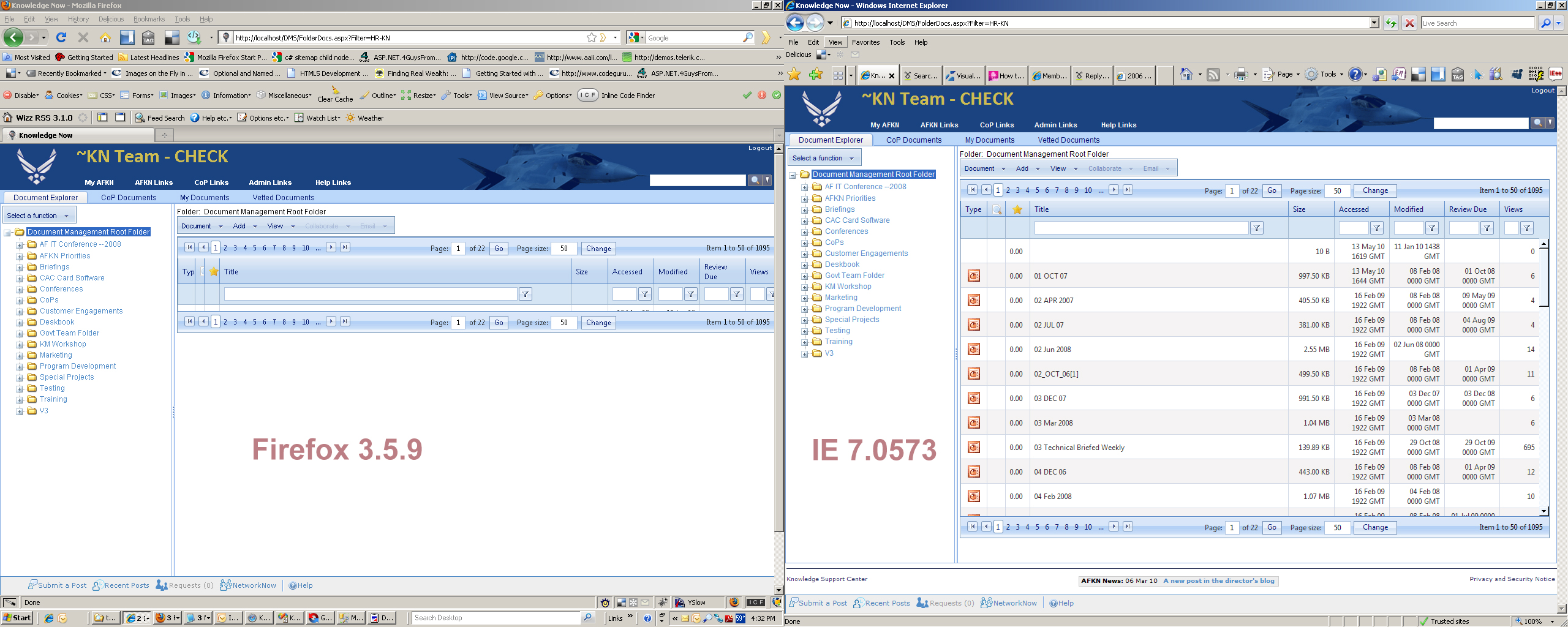 Attached is a file with the IE7 display and a sample of how all the others display the grid; filtering and scrolling with static headers enabled with a Office2007 skin.
