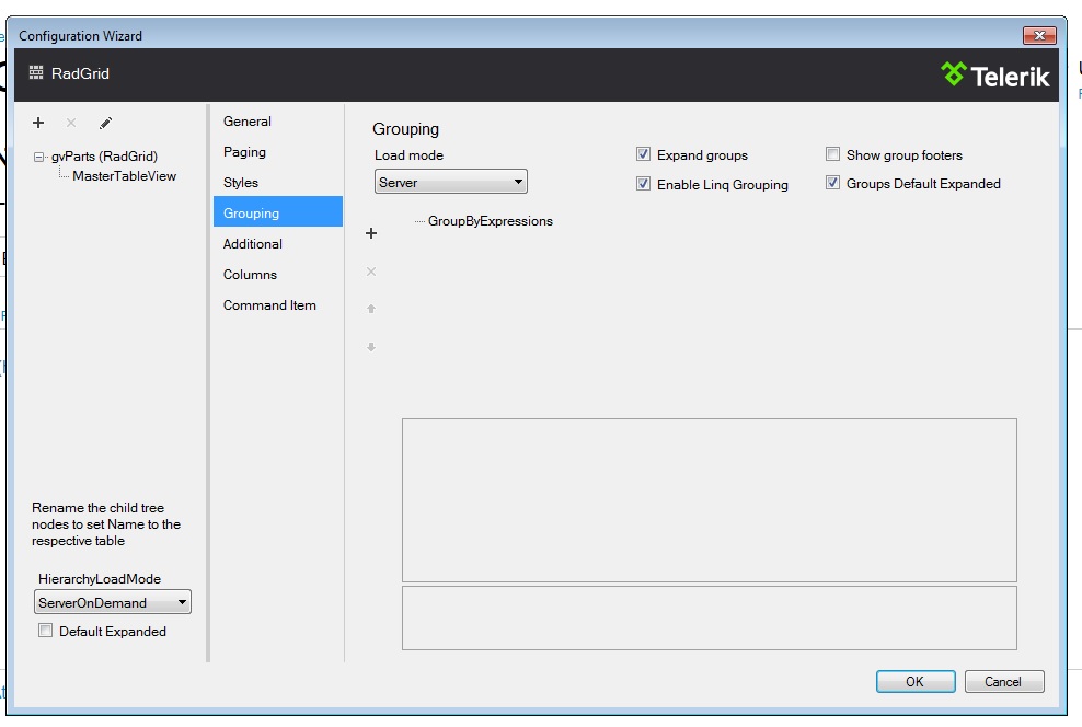 I have looking everywhere for a simple step by step method for enabling basic grouping in a grid either design or code. This link (http://www.telerik.com/help/aspnet-ajax/grid-design-grouping.html) shows fields for selection, I do not see the fields for selection. I have attached a screen print of what I can see. Thanks in advance.