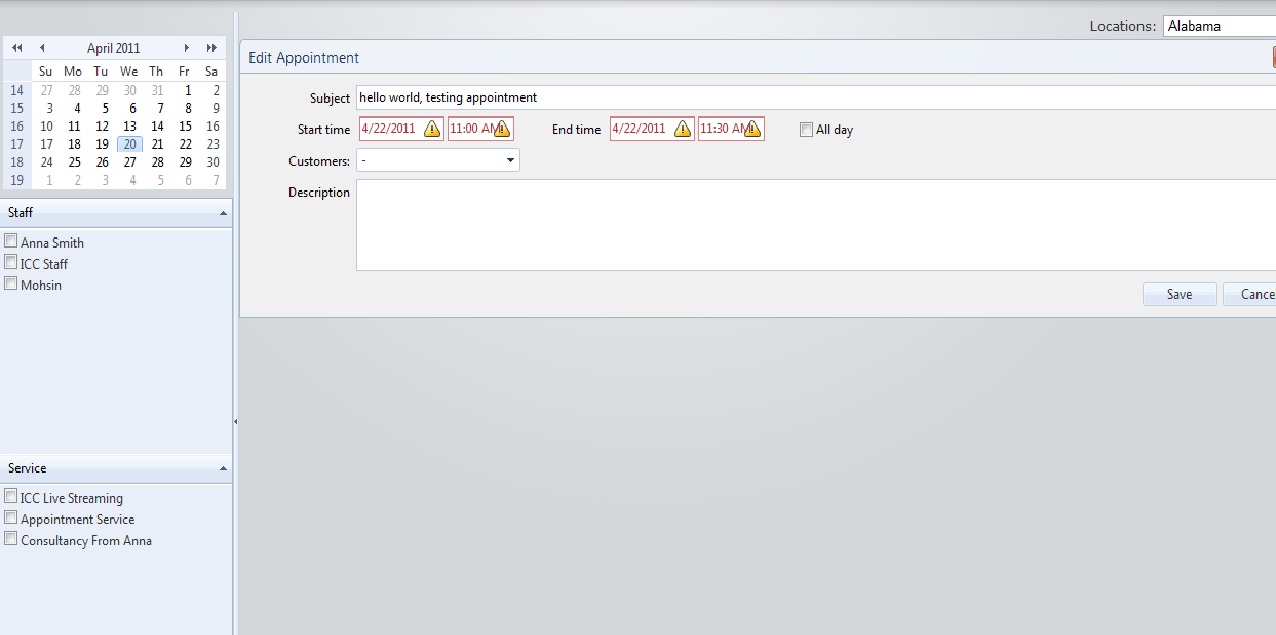 When I create any appointment via advance insert form it shows me error. When I add appointment from basic insert form it does not show me error, but when I edit any appointment it also gives me same error.