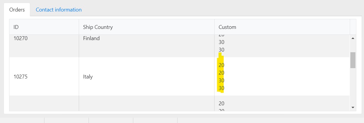 I have a grid populating local data with endless scrolling. I have a custom column with ng-repeat in template. Here the grid is duplicating values for that custom column against each data item whenever the loading of new items happens.