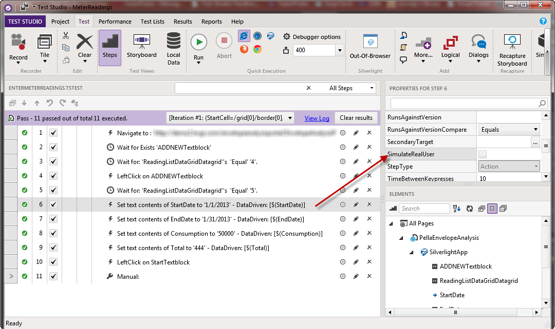 Do I have to create named elements for every cell of every row in the final datagrid, and then use those same names from the spreadsheet to target the correctly named cell? That seems like a VERY high maintenance way to do it. Ideally, when I click on "Add reading" and a new row is created in the data grid, there would be some way to tell the test to populate that new row with the next data record in the spreadsheet.