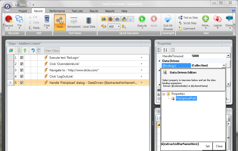 Thanks! It already worked. I have a last question. I'm using the extracted value as a data bind for a "Handle FileUpload Dialog" and it uses the FileUploadPath entered text not the extracted value