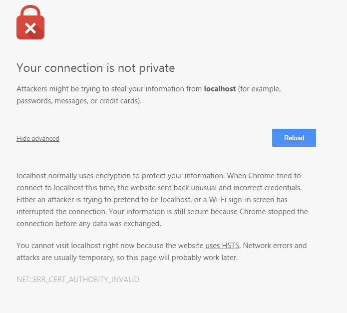 Having said that, I'll reiterate that if you properly trusted your IIS root certificate in Windows' Trusted Root Certificate store, you wouldn't see any error pages at all, HSTS or no.