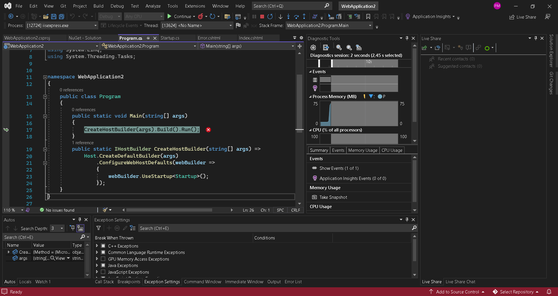 at WebApplication2.Program.Main(String[] args) in C:\Users\Pedro.q.Magalhaes\source\repos\WebApplication2\WebApplication2\Program.cs:line 17