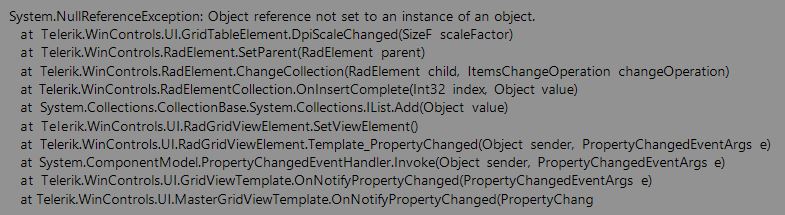 I'm using a RadGridView with ViewDefinitions and I'm getting an error when the Windows have the size of the text at 125%.