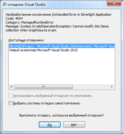 All works good, but when user try to edit diagram, IE crash with error "Error: Cannot modify the Items collection when the GraphSource is set". Screen with error in attachments.