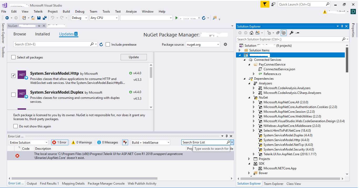 "Error The local source 'C:\Program Files (x86)\Progress\Telerik UI for ASP.NET Core R1 2018\wrappers\aspnetcore\Binaries\AspNet.Core' doesn't exist.0"