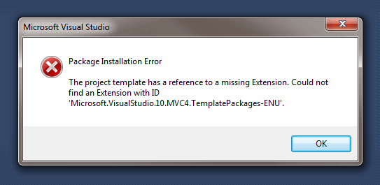 When creating a new project from the template Telerik MVC 4 Web Application (Razor) Visual C# - I get the error in the title (screen grab attached). I do not get the error if I create a new MVC4 web project using a template other than the Telerik ones.
