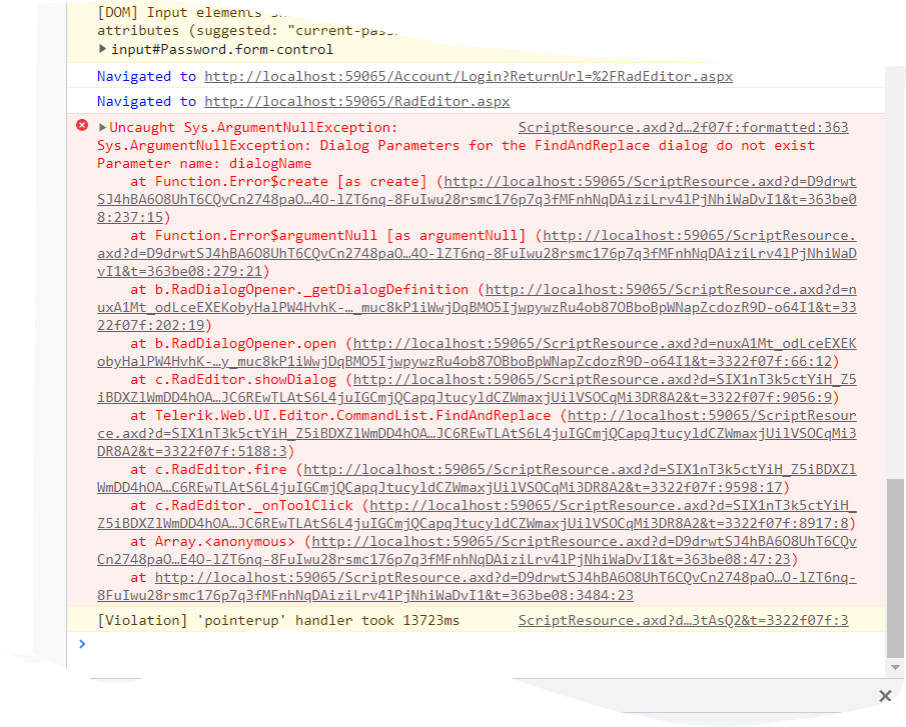 When I switch to mobile view on Chrome Dev tools then I see the RadEditor render in mobile mode. But, if I click on Find and Replace icon of RadEditor, then it results in a JavaScript error as shown in attached screenshot. It seems that RenderMode="Auto" doesn't work as expected.