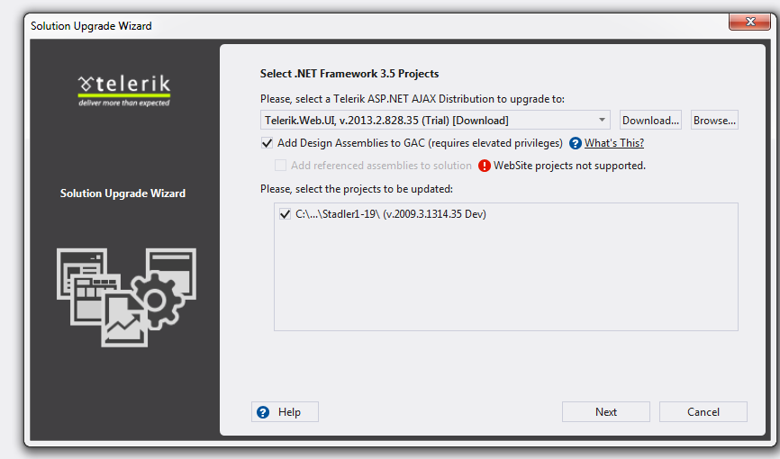 I am trying to upgrade a project from a Telerik 2012 version made on VS 2010 but I get this error at the end of the wizard: