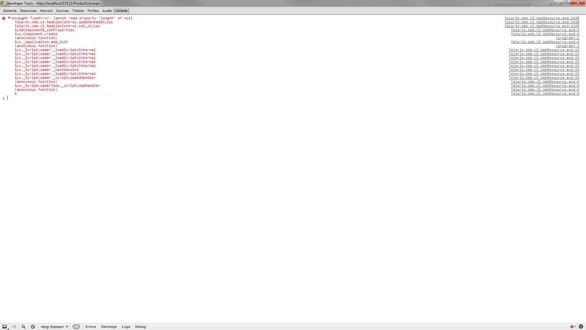 I have a problem in the RadAjaxloadPainel in the Browser Chrome Versão 25.0.1364.160 m, Only load one times. And generates the error in attachment.