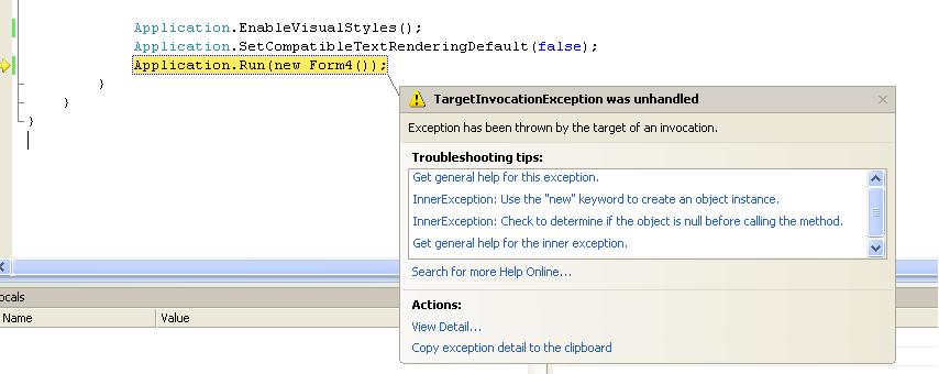The following error occurs