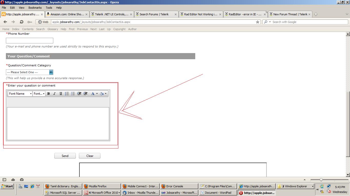 I have a problem in my page that is in my aspx page contains RadTextbox, RadComboBox and RadEditor. In the top of the I have placed radtextbox and placed the radcombox below to the radtextbox then placed the radeditor.