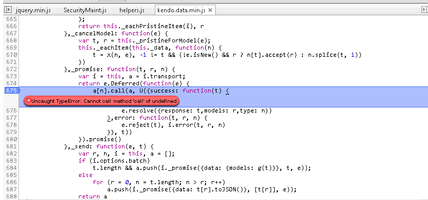 Hi - I have a grid that I am doing batch updates on, and I'm getting an error as shown in the attached screen shot. I'm not sure what I'm doing wrong? The text of the error is "Uncaught TypeError: Cannot call method "call" of undefined.