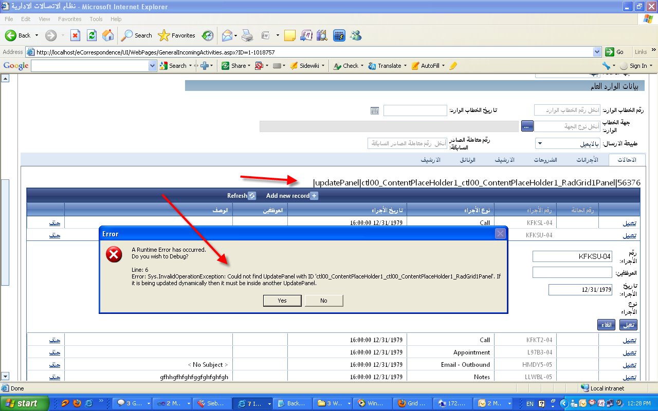 <telerik:GridBoundColumn UniqueName="Activity UID" HeaderText="رقم الأجراء" DataField="الأجراء">
