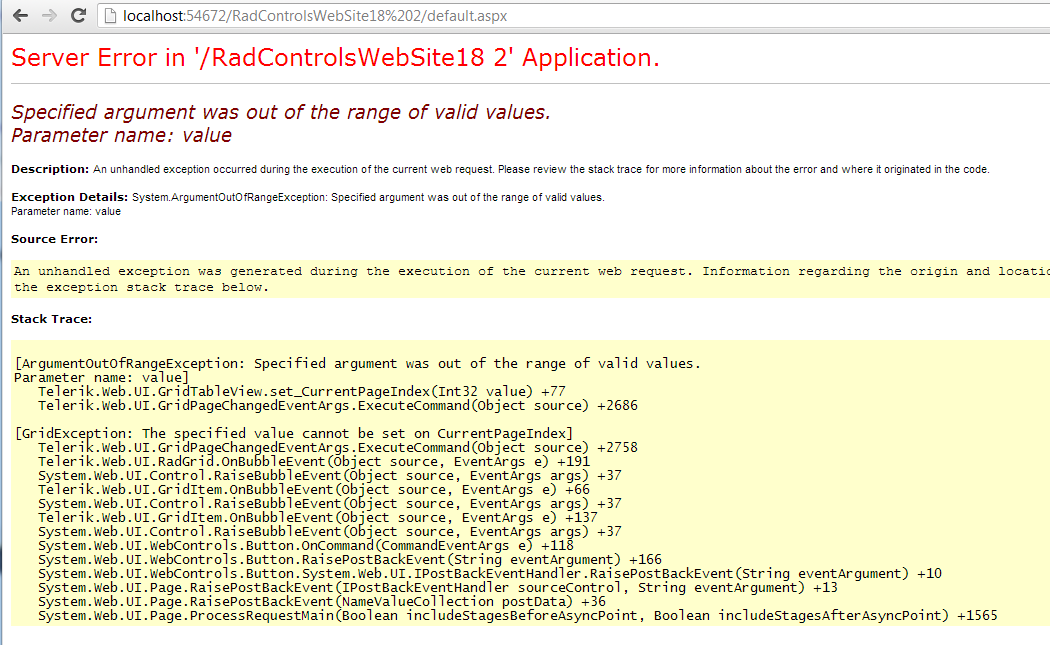 3. You will get a System.ArgumentOutOfRangeException: Specified argument was out of the range of valid values.