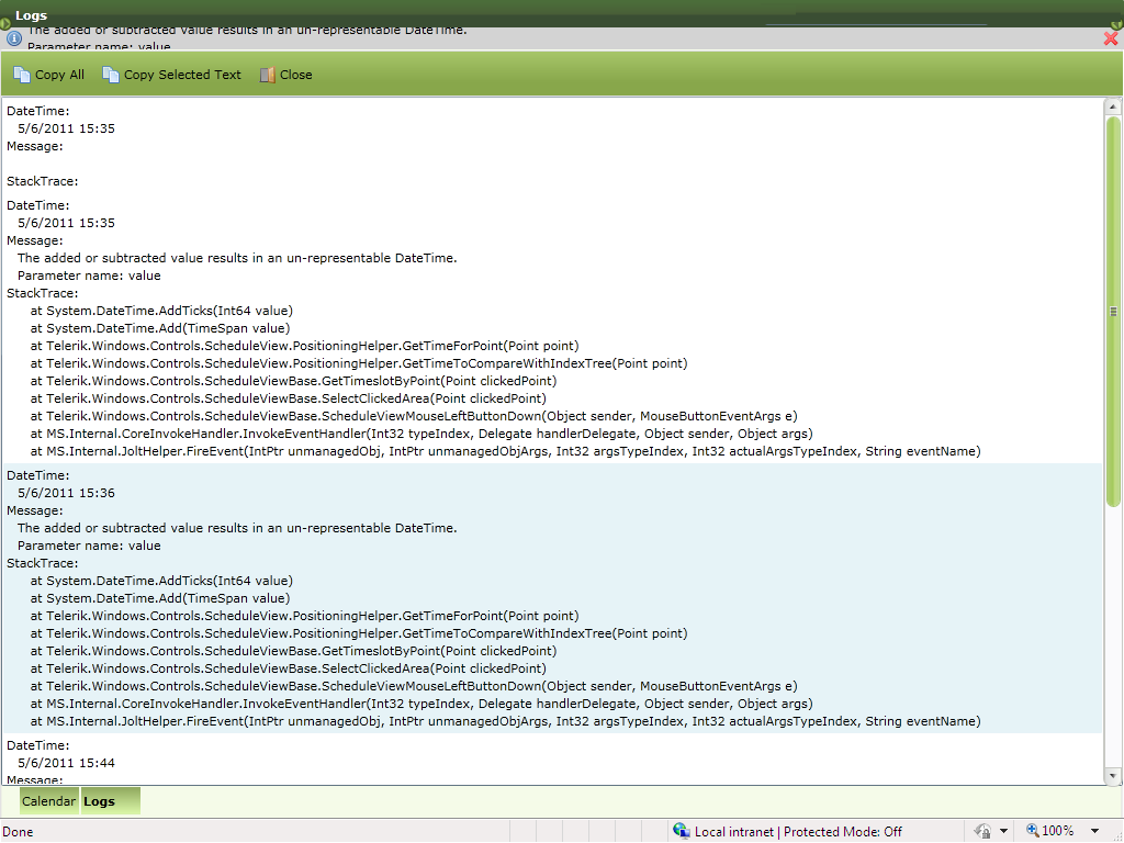 Hi telerik I get an error in schedulView. I set workdaystart and workdayend to 0. So scheudleView looks like Imag-1. Now As in imag-2 I expand the tree so scheduleView also expanded. And If i click on it I got an error as shown in Image-3/