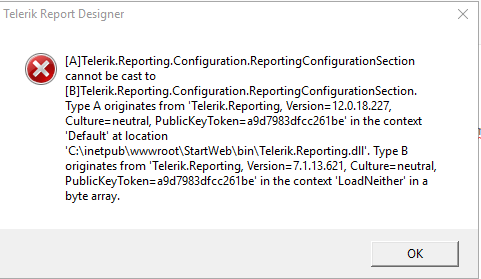 When I start the telerik report designer I get this error message: