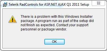 There is a problem with this Windows Installer package. A program run as part of the setup did not finish as expected. Contact your support personnel or package vendor.