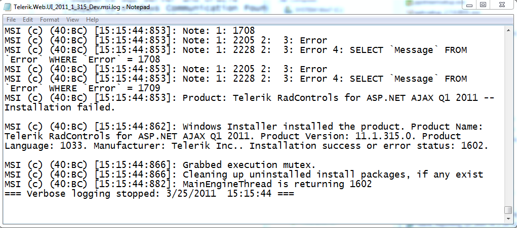 Now I am about to install Q1 2011 but failed with the following error message: