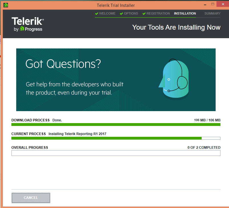 There is a suggestion that Telerik Control Panel started installation of products' prerequisites (other products required by the selected for installation Telerik product).