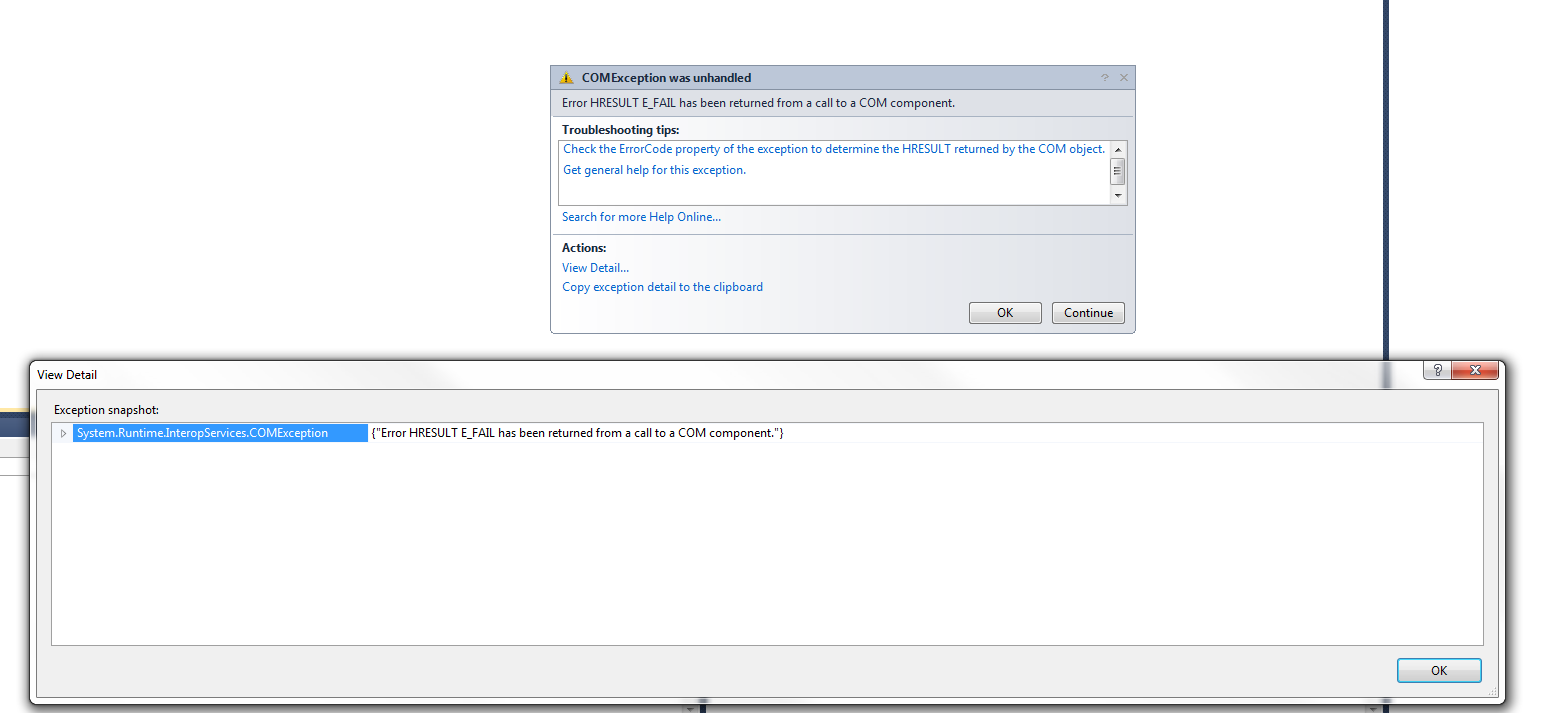 5) Lastly I chose the debug option on the error window and launched VS2010. Attached is the error from Visual Studio.