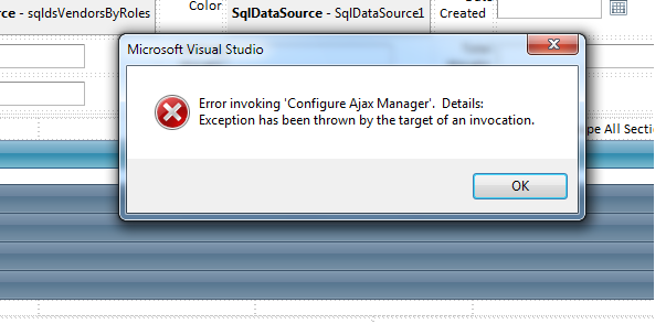 Get an error saying " Error Invoking 'Configure Ajax Manager' Details : Exception has been thrown by the target of an invocation "