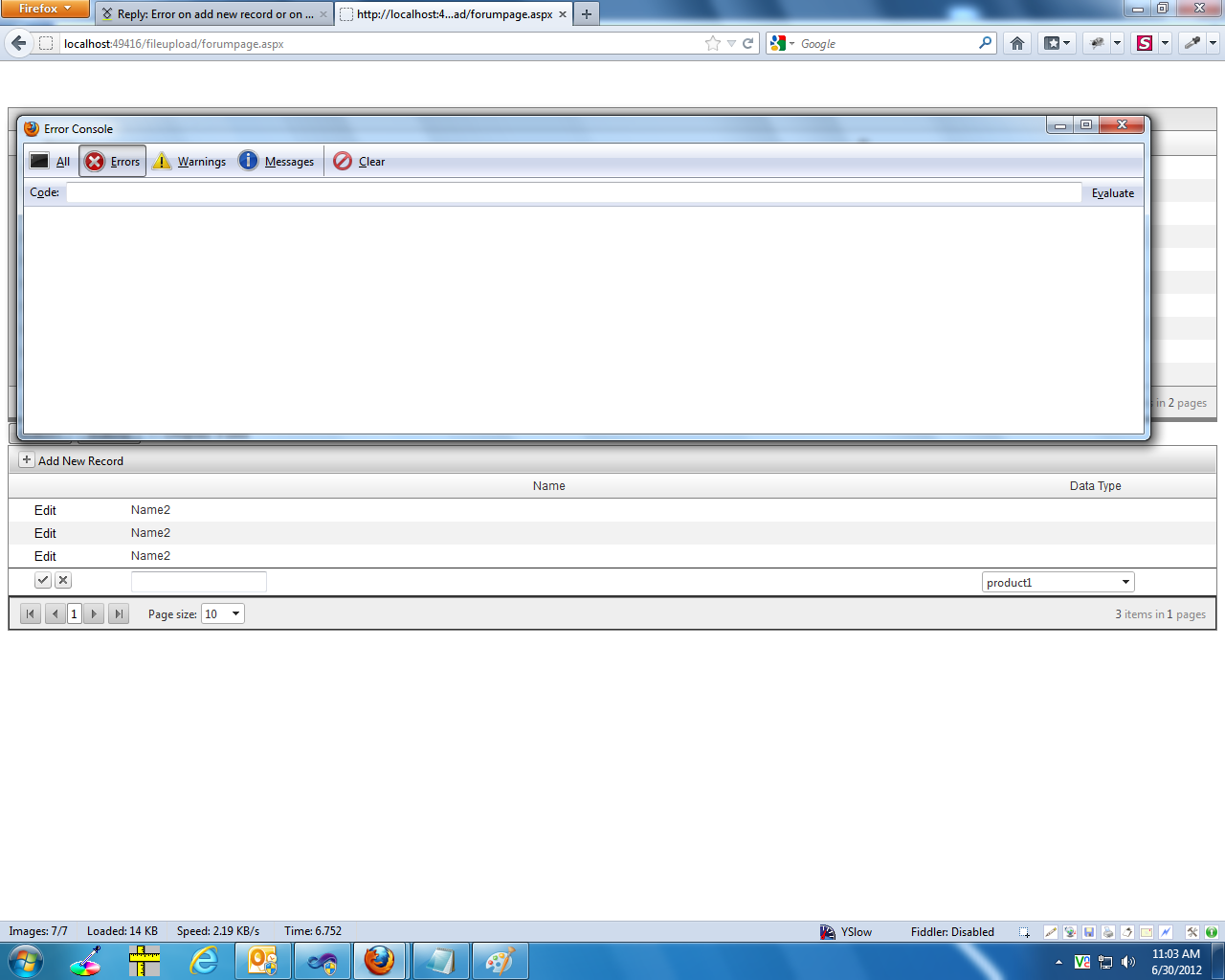 When the filter for the grid is shown on when I check the display filter checkbox and I click on Add New Record or Edit the Record then I get the following error stated below.