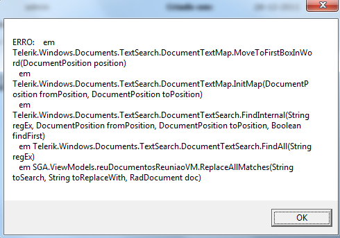 { MessageBox.Show("ERRO: " + erro.StackTrace); }