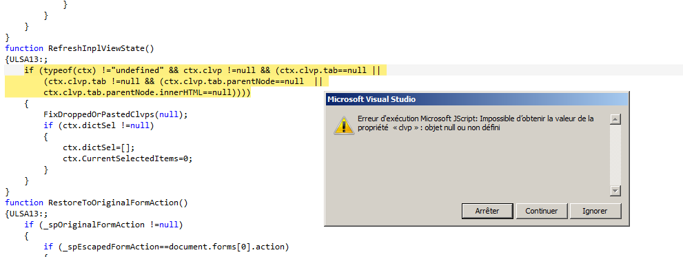 Error : Microsoft JScript:Enable to get the "clvp" property value ; object null or undefined.